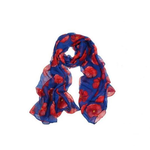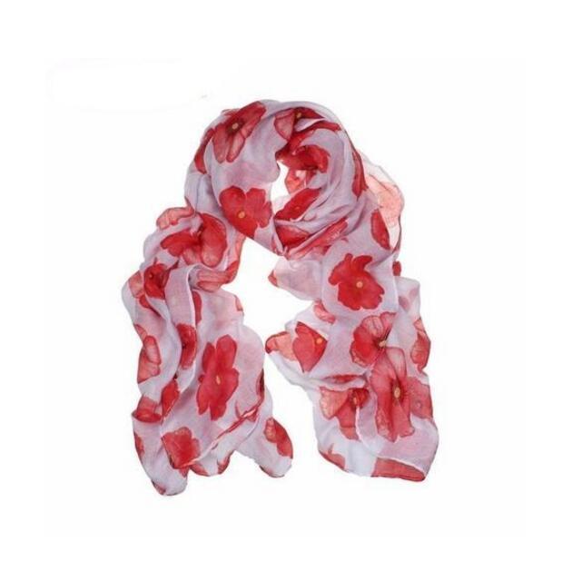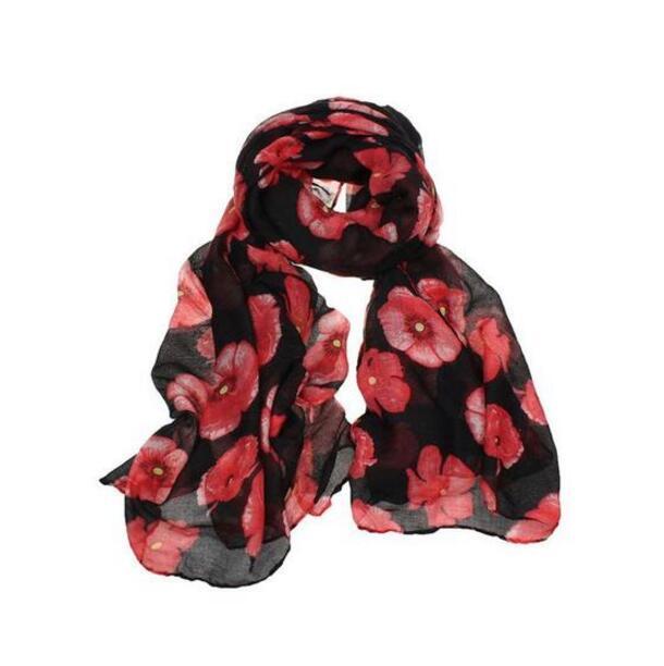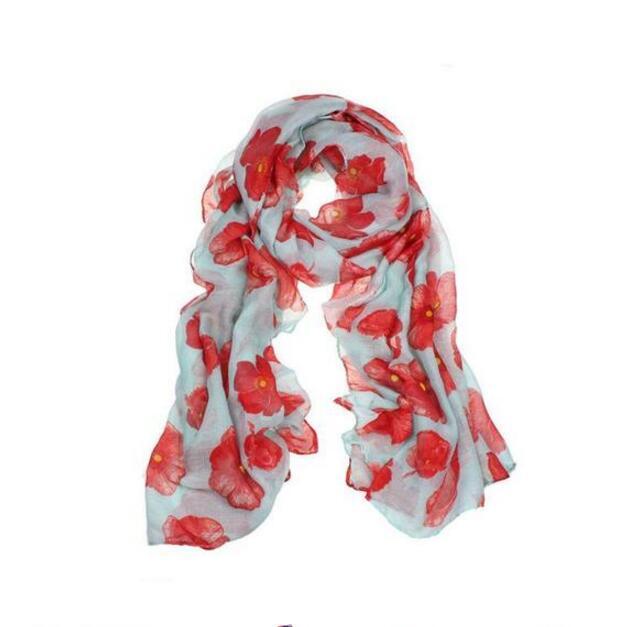 Red Poppy Scarf Print Long Scarves Flower